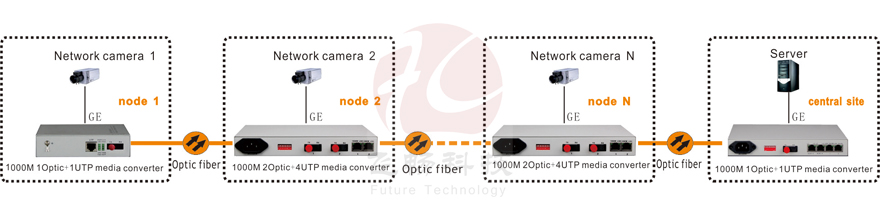 The device provides 4Channel 10M/100M /1000M Ethernet interface master fiber interface and backup interface. This four Ethernet interface is switch interface can be cascaded through 2 fiber interface convenient for chain group network support VLAN.