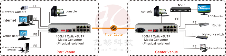 ? 4*100 megabit Ethernet channel, complete physical isolation. The same circuit optical fiber transmission of 2 group network