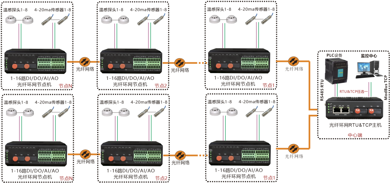 描述:工業(yè)級(jí)環(huán)網(wǎng)型光端機(jī)提供每個(gè)節(jié)點(diǎn)最多16路DI/DO/AI/AO在光纖中傳輸,支持多種光纖網(wǎng)絡(luò)拓?fù)浣Y(jié)構(gòu):點(diǎn)對(duì)點(diǎn)通訊、鏈型網(wǎng)絡(luò)、星型網(wǎng)絡(luò)及冗余環(huán)網(wǎng)自愈保護(hù)等拓?fù)浣Y(jié)構(gòu),并可在此基礎(chǔ)上組網(wǎng)