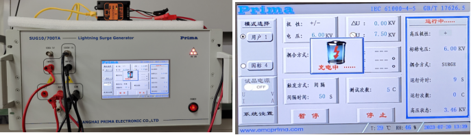 電源接口與RS485接口可過:短路電流波10/700μs,開路峰值輸出電壓6KV,內(nèi)阻40歐的雷擊測試