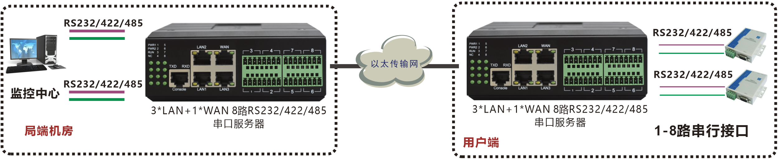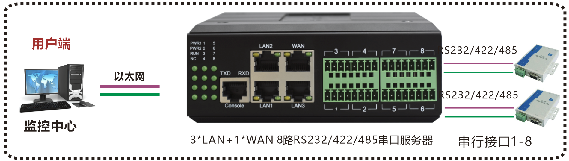 | 產(chǎn)品功能描述 | 在3路千兆LAN接口與1路千兆WAN接口上傳輸8路RS232/422/485串口,工業(yè)軌式 |