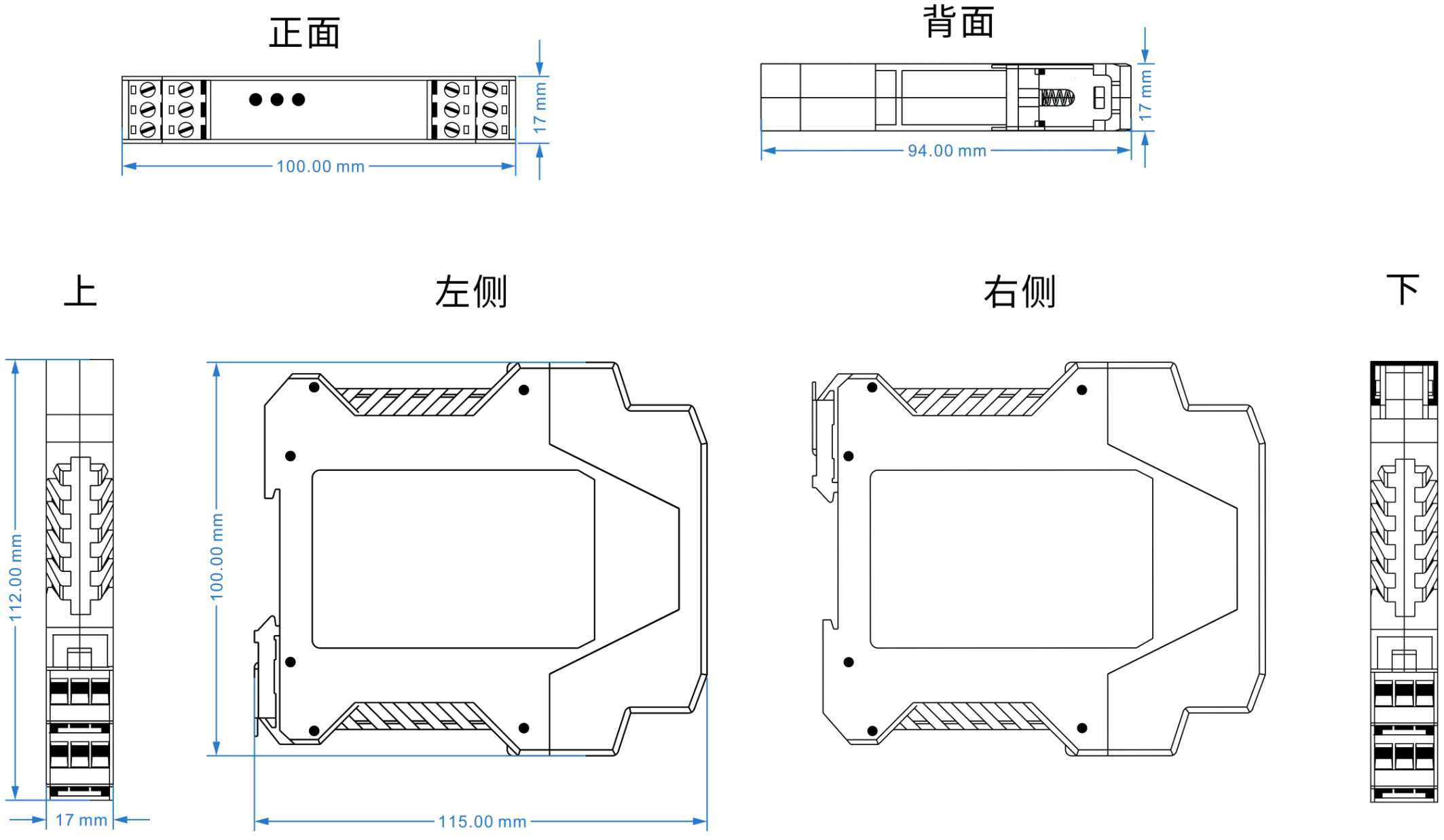 電源輸入DC5-70V ,功耗<1W 過載保護:支持;反接保護:支持; 接入端子:3芯5.08mm間距端子 |
