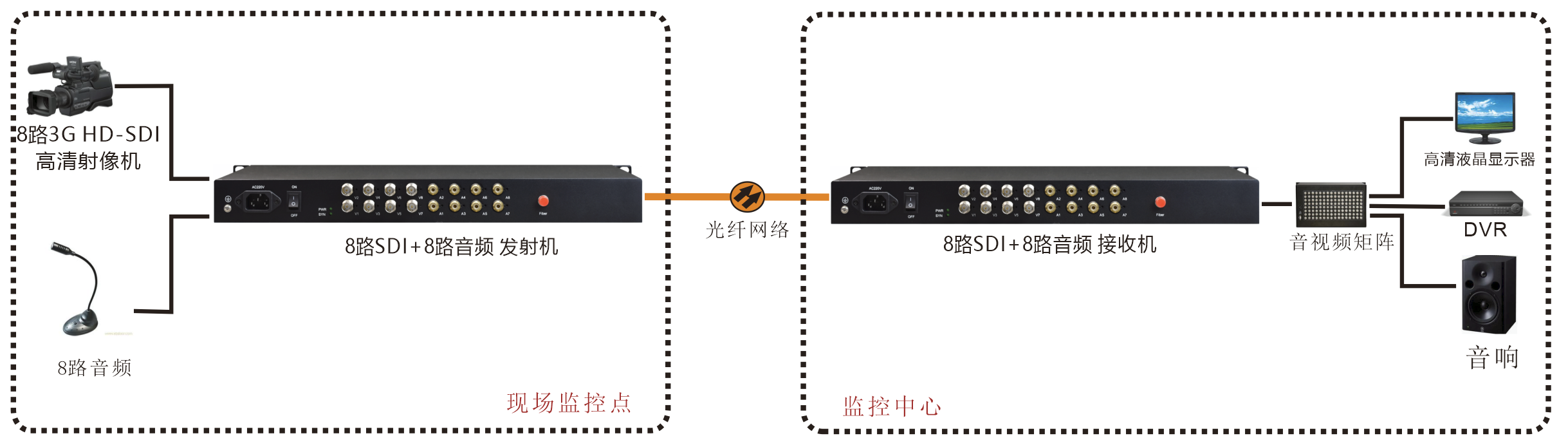 8路3G HD-SDI+8路蓮花座音頻 光端機